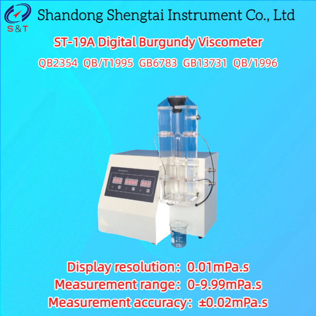 The ST-19A digital Burgundy viscometer is a specialized instrument used to measure the Burgundy viscosity of gelatin. It is designed and manufactured according to the QB2354 standard for medicinal gelatin, and also complies with QB/T1995,GB6783,GB13731,QB/1996. The measurement of Burgundy viscosity of gelatin is an important indicator reflecting the level of gelatin production technology and controlling the quality of gelatin production. It is also applicable to the viscosity performance testing of all gelatin such as edible gelatin, medicinal gelatin, industrial gelatin, bone glue, etc; Viscosity testing of gelatin liquids such as agar and protein powder.