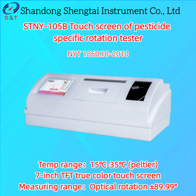 The STNY-105B pesticide specific optical rotation meter is designed and manufactured in accordance with the NYT 1860.18-2010 Guidelines for Testing the Physical and Chemical Properties of Pesticides Part 18: Specific Optical Rotation Method. It is a specialized instrument for measuring the specific optical rotation of pesticides. Using touch screen display and LED cold light source, it has a long service life and can detect optical rotation, specific rotation, concentration, etc