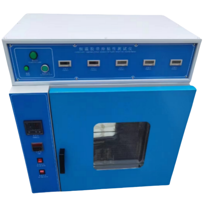 Das Prüfbrett mit der beigefügten Probe wird senkrecht auf dem Prüfstand aufgehängt, und am unteren Ende wird ein Gewicht eines bestimmten Gewichts aufgehängt.Die Verlagerung der Probe nach einer bestimmten Zeit bei einer bestimmten Temperatur, oder die Zeit, in der sich die Probe vollständig löst, wird verwendet, um die Fähigkeit des Klebebandes zu charakterisieren, dem Abziehen zu widerstehen.geeignet zur Durchführung von Haftungstests an Produkten wie druckempfindlichen Klebebändern.