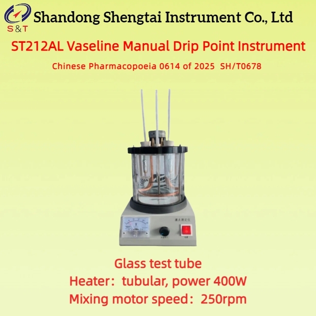 The ST212AL manual Vaseline drop point analyzer fully complies with the standards of the 2025 Chinese Pharmacopoeia, British Pharmacopoeia, and SH/T0678 "Vaseline Drop Point Determination Method" for determining the drop point of Vaseline, that is, the temperature at which Vaseline reaches a certain fluidity under the specified test.